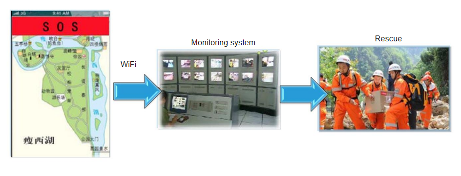 Tourists trigger one click for help, the system binds the position according to the signal sent by the caller, Provide the real-time location, so that the helpers can be found in the shortest time and implemented emergency rescue service