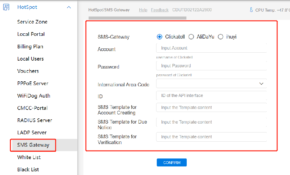 This gateway can work with some 3rd party SMS provider, users/hotel should register accounts from the SMS provide;