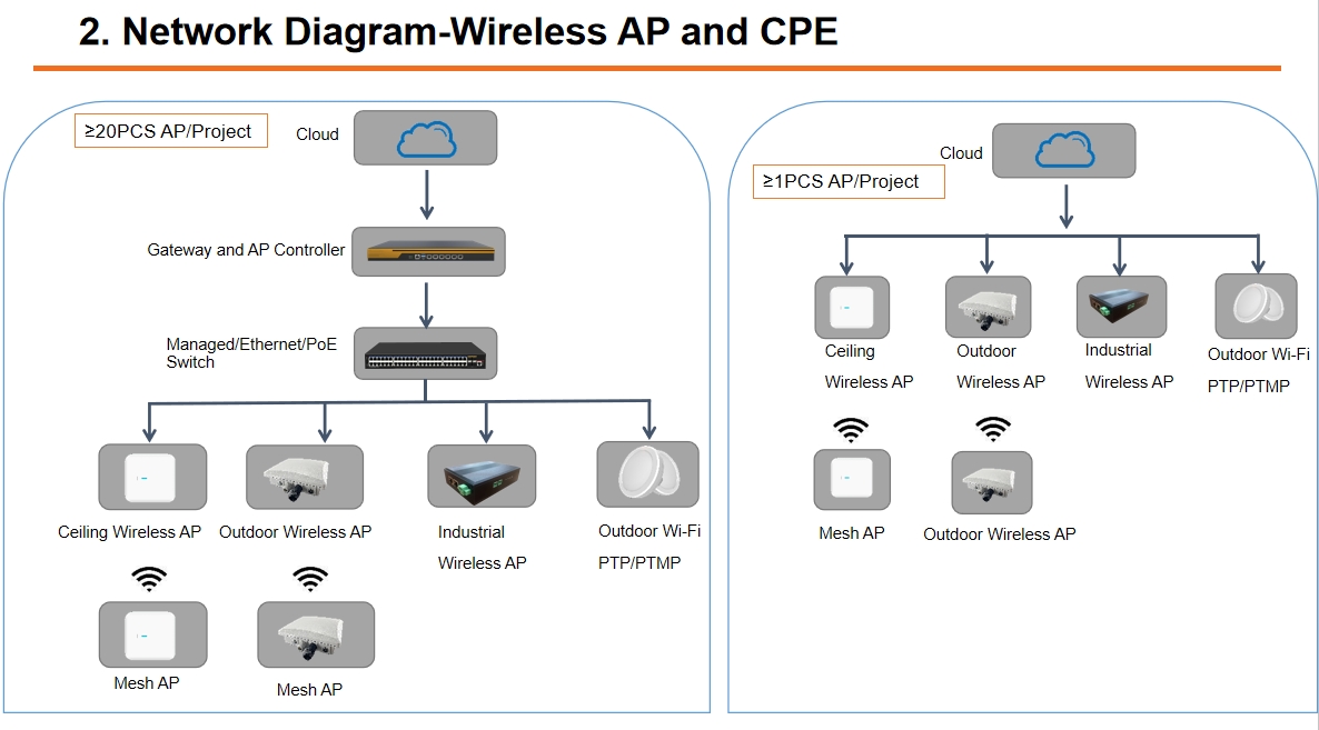 2. For small project, home applications, we can banding AP/Managed Switch or Router to cloud directly;